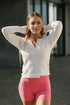 In classic White, this slim-fitting henley-style top features domes at the chest for a stylish touch and thumb holes in the sleeves for added coziness.