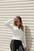 In classic White, this slim-fitting henley-style top features domes at the chest for a stylish touch and thumb holes in the sleeves for added coziness.