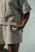 The Box Short is your new everyday essential, combining style and comfort in a textured fabrication. Featuring an elasticated waistband and practical pockets, these shorts are designed with a flattering shorter length that keeps it effortlessly cool. Pair them with the Cropped Sloppy Joe Hoodie for a matching set that’s perfect for relaxed weekends, coffee runs, or laid-back lounging.