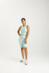 The Tank Bra features a high neckline, racerback style back, a wide band around the waist, removable bra cups inside a shelf bra and our signature Rose Road text on the back.